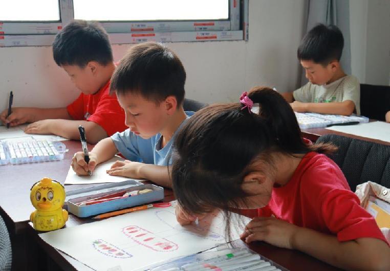(图为小朋友们认真绘画)