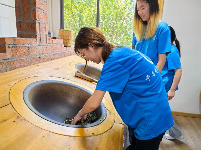 实践期间,队员们跟随徐陵走进茶山,亲手参与肉桂茶的采摘,并体验了日光萎凋、做青、炒青、碳焙等武夷岩茶传统制作工艺。大家从劳动中体会到茶农的艰辛与坚守,也更加理解了茶叶背后所承载的匠心精神。