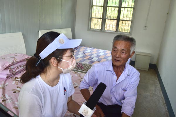 (图为团队成员采访康复中心现负责人 王厚琴 周越 摄)