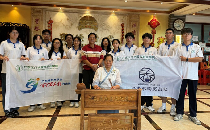 轮到我们实践时,才惊觉这方寸之间的学问。非遗传承人俯身指点,从双手搓动的角度与速度到繁复技艺的拆解。当第一支成型的竹签香诞生,我们这才恍然,这一支支竹签香,不只是技艺的结晶,更是新会文化鲜活的“活态化石”,承载着历代匠人的心血与坚守。