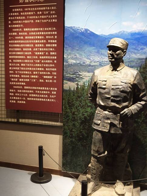 走在展馆中,工作人员细致详细的为志愿者讲解道:彭雪枫别名彭修道,1907年9月出生于河南镇平县城南七里庄村的一个普通的农家小院里。在这里,他度过了他的童年、少年时代,18岁离开家乡开始他的求学之旅,从此走上漫漫的革命征程,最终成为忠诚的共产主义战士、中国工农红军和新四军高级指挥员、杰出的无产阶级革命家、军事家。被毛泽东、朱德等人誉为“中华民族英雄,共产党人的好榜样”。博物馆中记载了中国共产党波澜壮阔的发展历程,记录了新中国从诞生走向繁荣富强的成长足迹,凝结着先辈们可歌可泣的斗争精神,蕴含着国家与民族的文化基因信息。与古籍善本一样,他们都是历史的馈赠。”