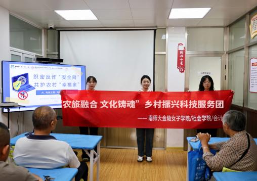 (通讯员:边兆涵)2025年8月9日上午,南京师范大学金陵女子学院/社会学院/会计学院的“农旅融合,文化铸魂”志愿团队,在南京市浦口区星甸街道夏桥书房成功举办主题为“织密反诈‘安全网’,共护农村‘幸福家’”的反电信网络诈骗宣传讲座,旨在提升当地居民防范意识与能力。