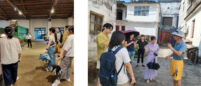 7月1日,实践团来到祁门县平里镇。平里镇是祁门红茶“万里茶道”的起运点,自祁红诞育之初便是祁红原叶种植与加工外销的重镇。而如今的祁红人在传统制茶的工艺基础上建立起一条5G智能一体化生产线,实现了从鲜叶到成品茶的全流程自动化。目睹现代化科技赋能传统茶产业转型升级的生动实践,实践团成员深受启发,围绕祁门红茶品牌建设、数字化转型与互联网营销等议题展开热烈研讨,从产品创新、渠道拓展、文化传播等多维度为祁门红茶融入新经济格局建言献策。随后,实践团参观了被誉为中国茶业黄埔军校的祁门茶业改良场,聆听了祁红新农人郑海刚讲述吴觉农、胡浩川、冯绍裘等先辈在此耕耘创新,使祁红香飘万里的故事。午后,实践团前往芦溪乡拜访安茶制作技艺传承人严君凤,了解祁门安茶历史及其制作的十四道工序。