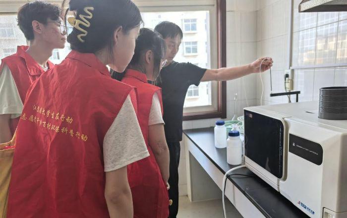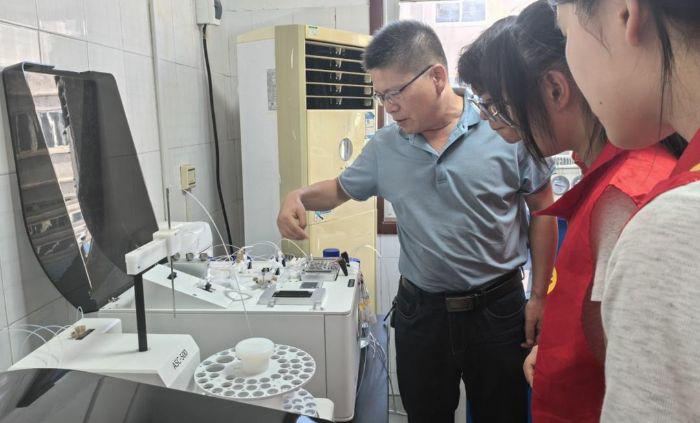 为了后续的实地调研,小分队在商丘市环境监测中心开启了深度研学之旅。在实验室内,技术专家带领队员们系统参观了各类高精度监测仪器,并详细讲解了水、大气、土壤样品采集的规范流程以及实验室分析的基本原理。队员们近距离观看了离子色谱、气相色谱等设备的操作演示,理解了环境监测工作如何像“环境的‘体检医生’”一样,精准识别污染物、守护生态安全。