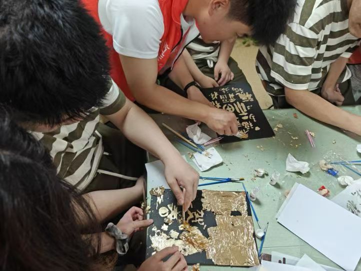 潘浩感叹:“与残障朋友共绘金箔画时,他们纯净的眼神和热忱的态度让我难忘。每一片金箔的粘贴都是对美好的追寻。他们如暗夜繁星,以独特光芒照亮世界。这次经历让我学会以更包容的心拥抱生命的多样。”