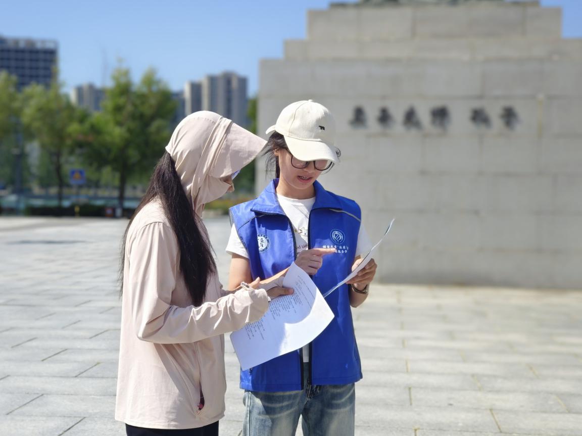 (图为实践队成员对鲁东大学同学进行AI诈骗的调研 “法盾防诈”实践队 徐瑛璐 供图)