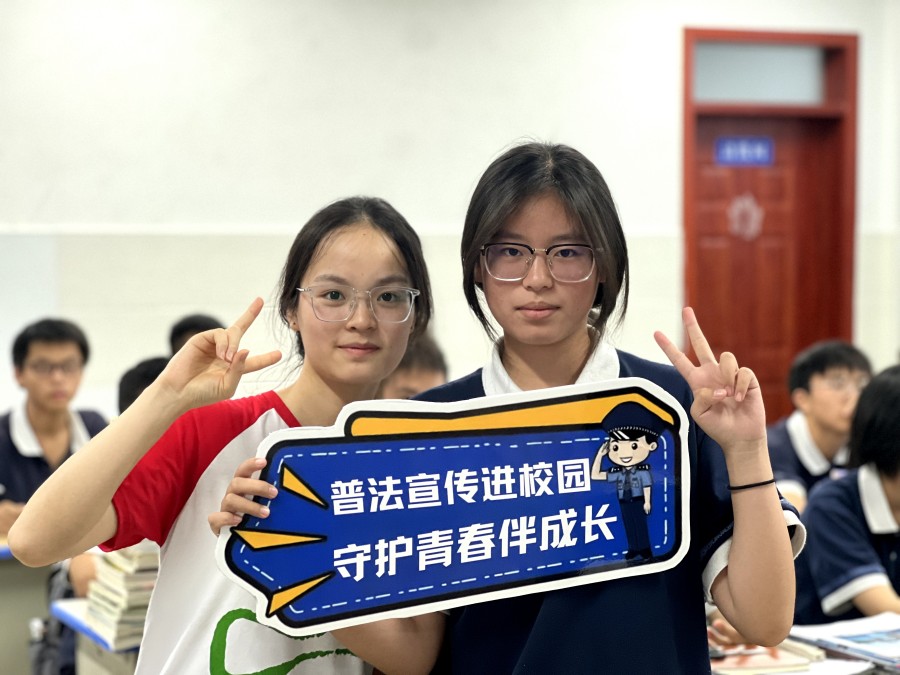 “咔擦”——记录认真的你们。吉首市第一中学的学子在听到到志愿者们展开的趣味合拍活动后,便积极拿取自己认为最有意义、最有价值的手卡,与志愿者和好朋友进行打卡合拍。在一片欢声笑语中,绚烂多彩的手卡似乎成了他们心情最好的展示牌。学校里的女孩们是最为积极的与志愿者进行合照的,女性们相互依傍,在此刻,我看到已经不仅是一场普法活动,我更看到了女孩子之间的温柔,用自己最柔和最友善的姿态面对着充满善意的人。通过此次活动,学生们对自身的受教育权、生存权、发展权有了更深入的认知,同时在对于世界观、人生观、价值观的塑造上更加健全。“咔擦”——记录认真参与科普活动中最美好的你们。