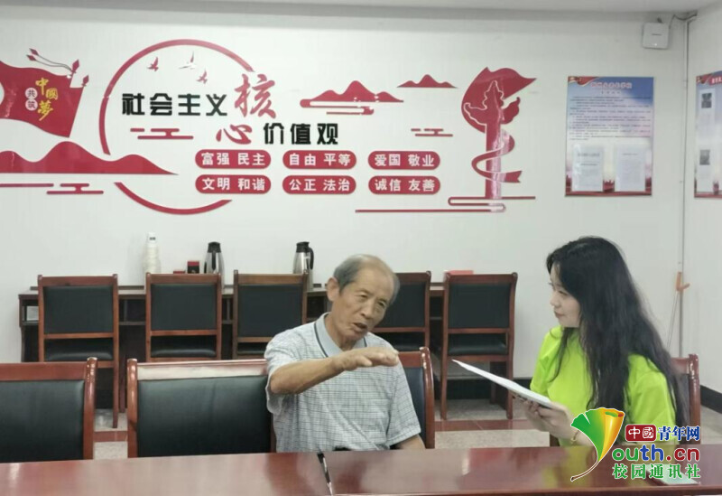 图为实践团成员在采访老党员。张旭露 供图
