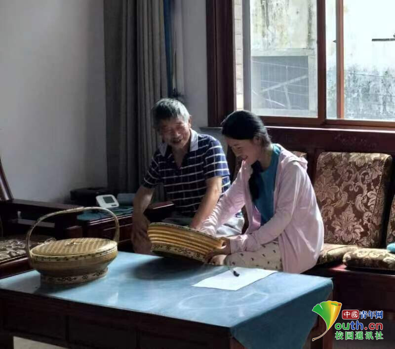 图为实践团成员在了解非遗竹编。张旭露 供图