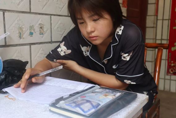 图为女孩阅读填写心理健康调查问卷。张璐摄