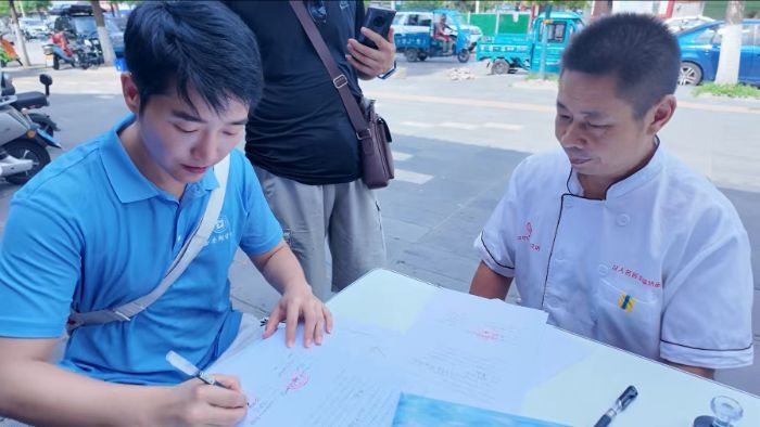| 图 7 :带队老师陈浩铭与汉中面皮行业协会副会长签订双方共建大学生社会实践基地协议 |